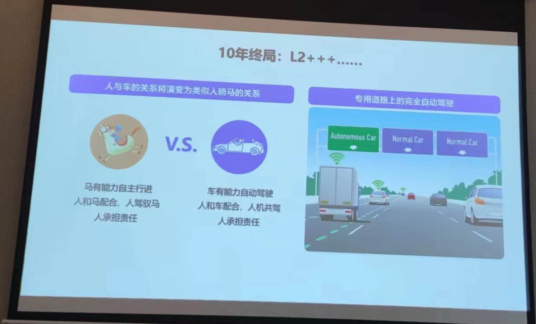 近期,余凯在公开演讲中阐明观点:城区NOA真正做到可用还需至少3年,到2025年L2+高速NOA仍是量产主力,自动驾驶的十年终局,仍是“L2+++”,人与车的关系将演变为类似人骑马的关系,人驾驭马,人承担责任;人和车配合、人机共驾,人承担责任。
