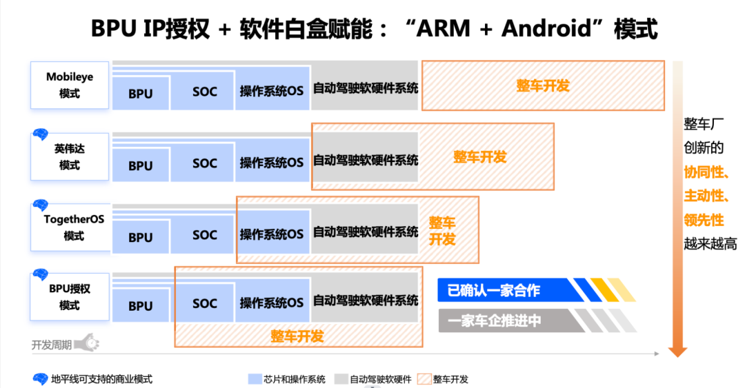 值得注意的是,地平线正在做更开放的商业模式布局。根据披露的信息,地平线提供三种不同程度的开放合作模式,并将其概括为“BPU授权+软件白盒赋能”模式。