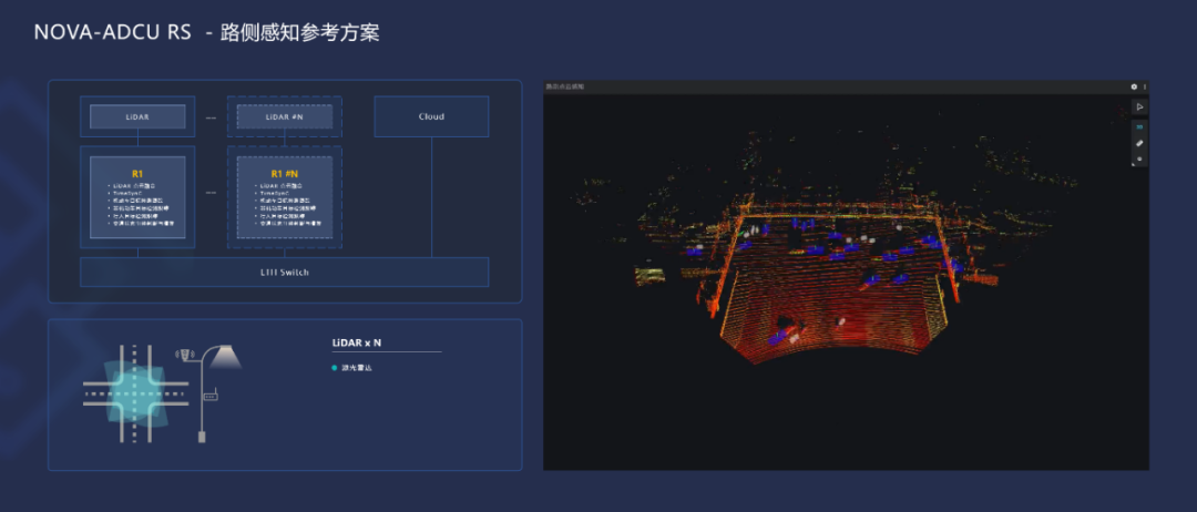 NOVA-ADCU RS 是面向车路协同场景开发的路侧感知参考方案,基于惊蛰R1芯片提供路侧MEC设备参考设计,可部署激光雷达点云融合、机动车/非机动车/行人等目标检测和跟踪算法,并进行交通状态事件判断与播发。目前超星未来基于R1芯片的边缘侧计算方案已经在车路协同场景实现了规模化落地。