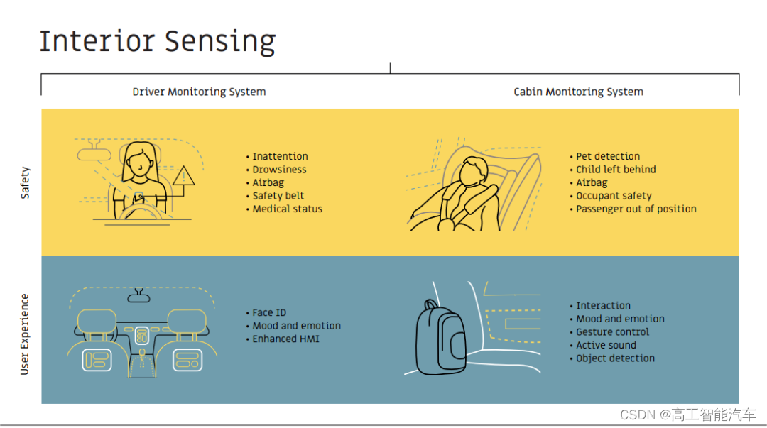 作为人机共驾概念下,舱内感知交互的关键一环,基于摄像头的Face ID、DMS、OMS等功能性应用,与AR HUD、语音、遗留物体检测、辅助驾驶等融合型应用,以及延伸的类似支持美颜、美妆和趣味AR特效拍照等车载娱乐应用,正在成为智能座舱体验升级的一部分。