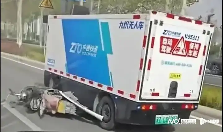 仅在4月,就有多起无人配送车引发的安全事故连续爆出。例如在4月8日,有网友拍摄的视频显示,在陕西咸阳,一辆车身标识有“九识”和“中通快递”的无人车拖行电瓶车的视频引发关注。