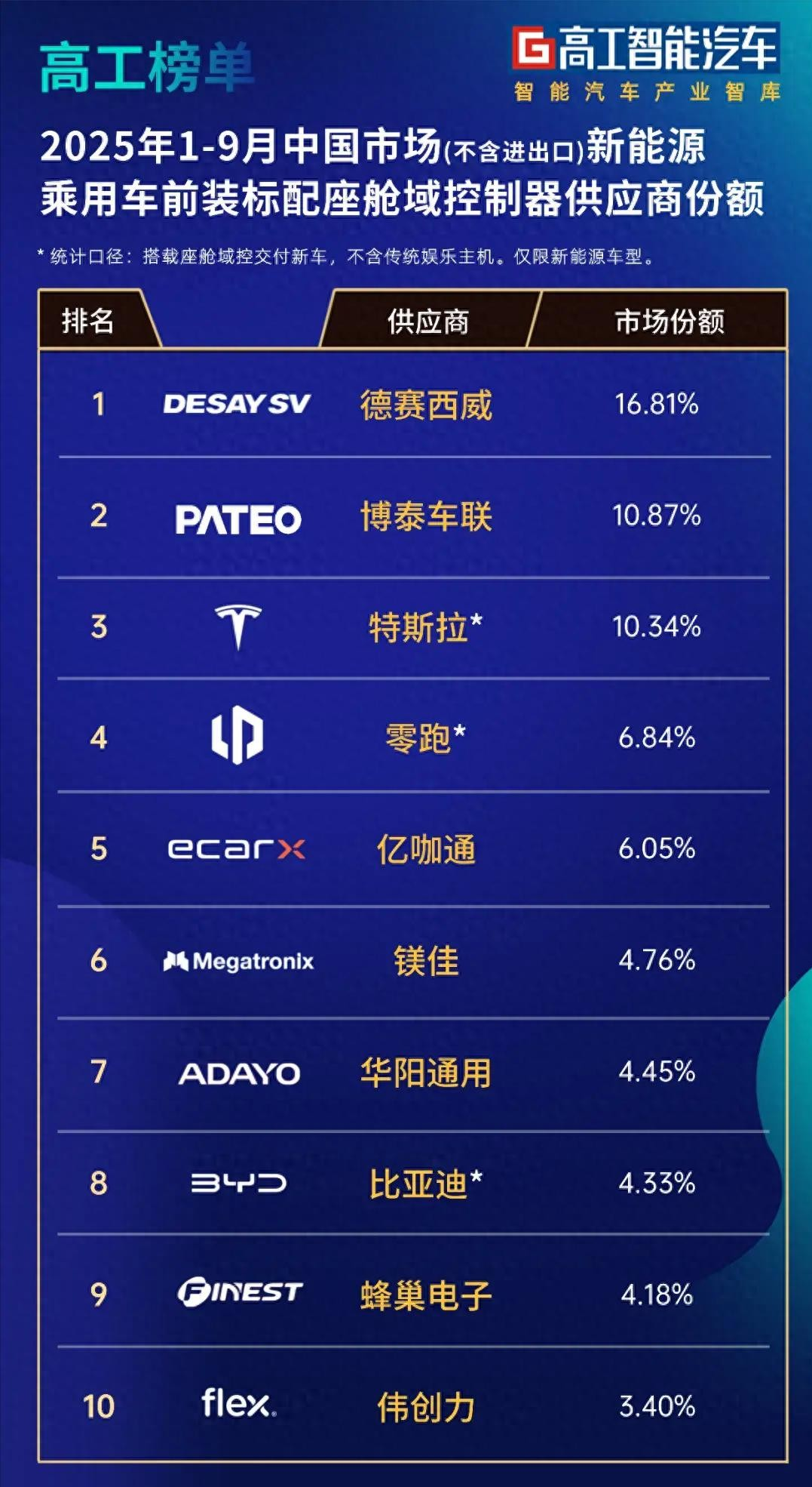 其中,新能源车型是座舱域控制器的主力贡献市场。按照2025年1-9月前装统计数据显示,德赛西威、博泰车联排名市场份额前两位。而博泰车联是唯一一家在高通和华为两大主力AI座舱算力平台实现规模化量产交付的供应商。