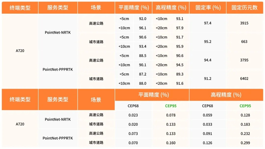 2025年9月,华测导航在欧洲进行了为期60天、跨越13国、总里程超过2万公里的大规模路测,实测数据显示:A720+PointX 方案在欧洲高速公路与城市道路场景中,平面精度优于20cm@CEP95,固定率最高达97.9%,充分验证了方案在欧洲复杂路况与法规环境下的稳定性和适应性。