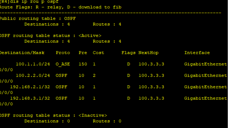 [R4-ospf-1-area-0.0.0.1]network 100.3.3.4 0.0.0.0