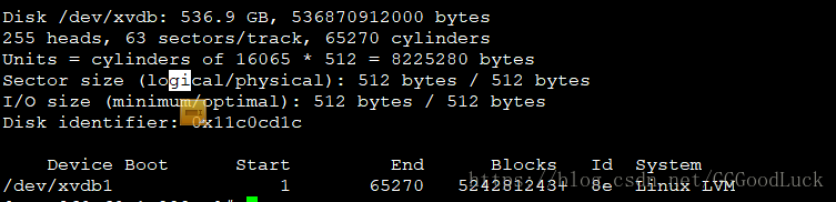 我们的新建分区/dev/xxx,却不是LVM的。所以,接下来使用fdisk将其改成LVM的。