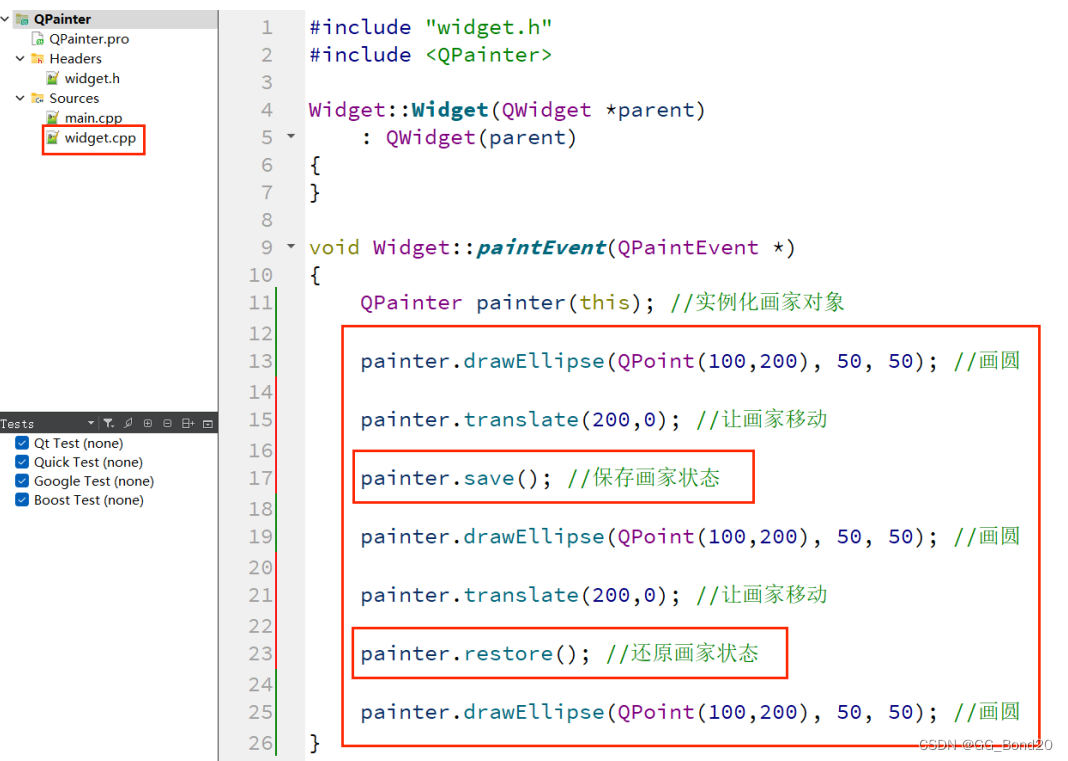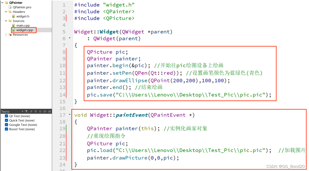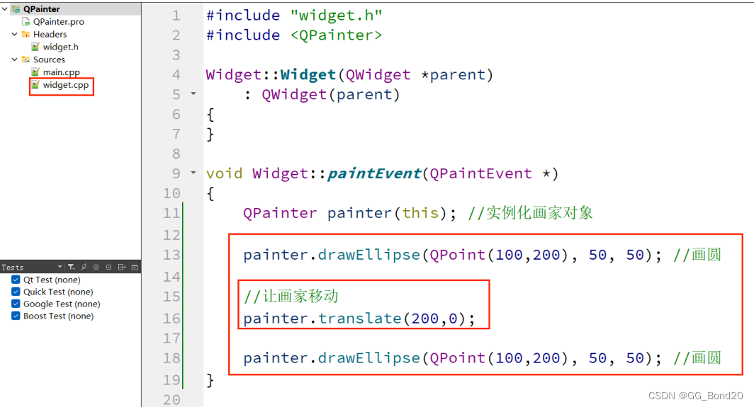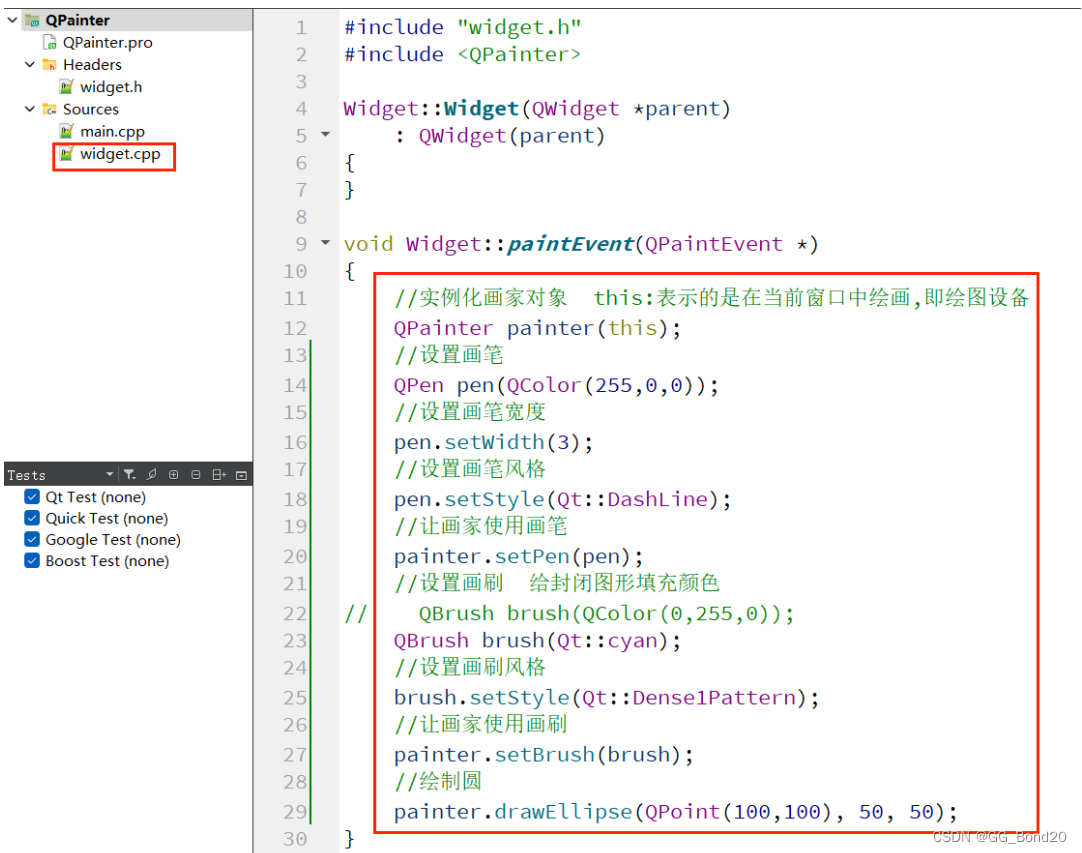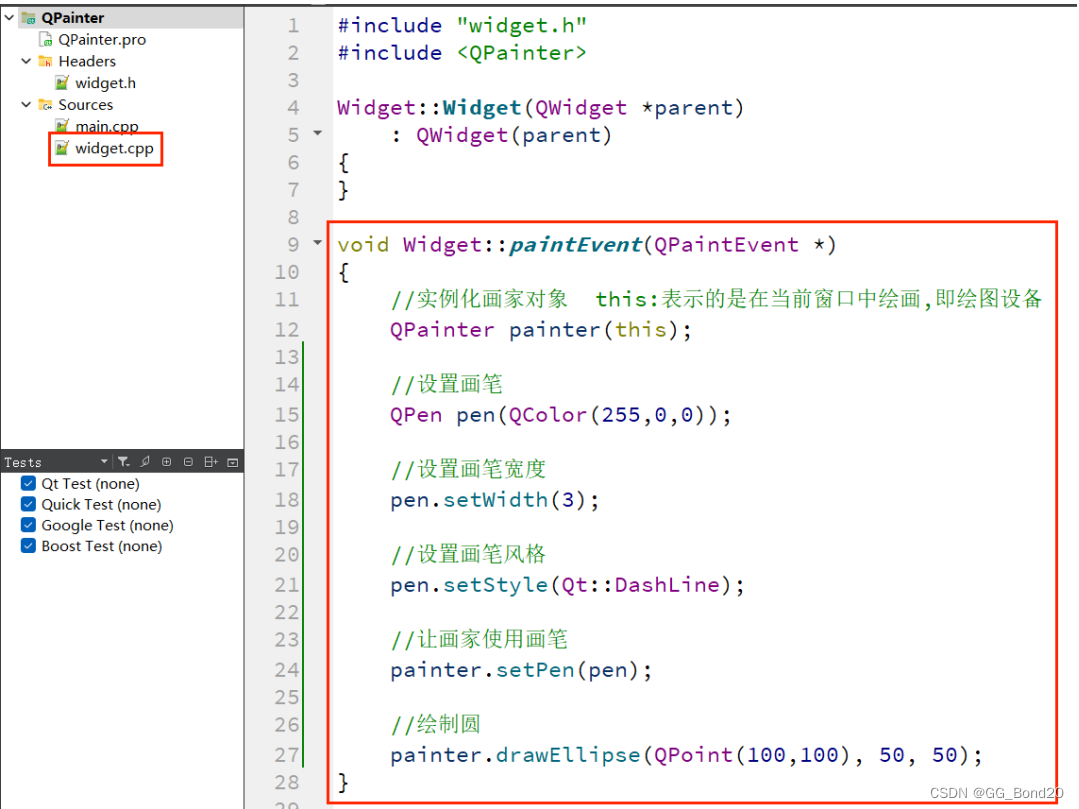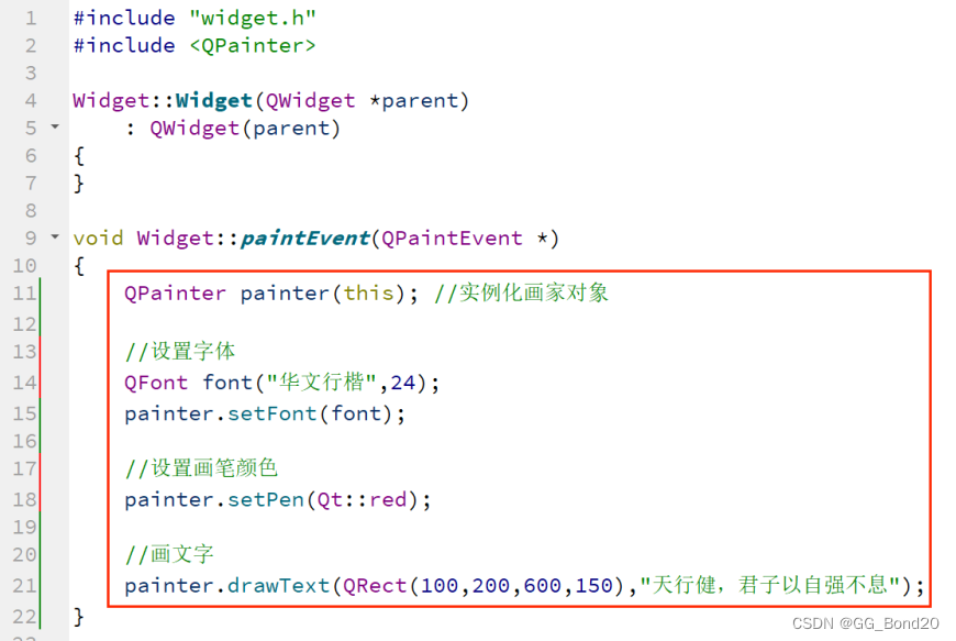绘图 API 的使用,一般不会在 QWidget 的构造函数中使用,而是要放到 paintEvent 事件中