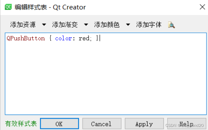 上述代码都是把样式通过硬编码的方式设置的,这样使QSS代码和C++代码耦合在一起了,并不方便代码的维护。因此更好的做法是把样式放到单独的文件中,然后通过读取文件的方式来加载样式