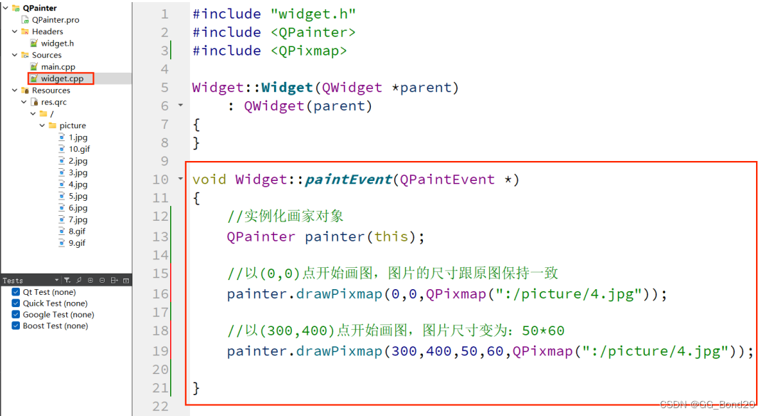 - 搭配 QPainter 的 drawPixmap()函数,可以把这个图片绘制到QLabel、QPushButton等控件上