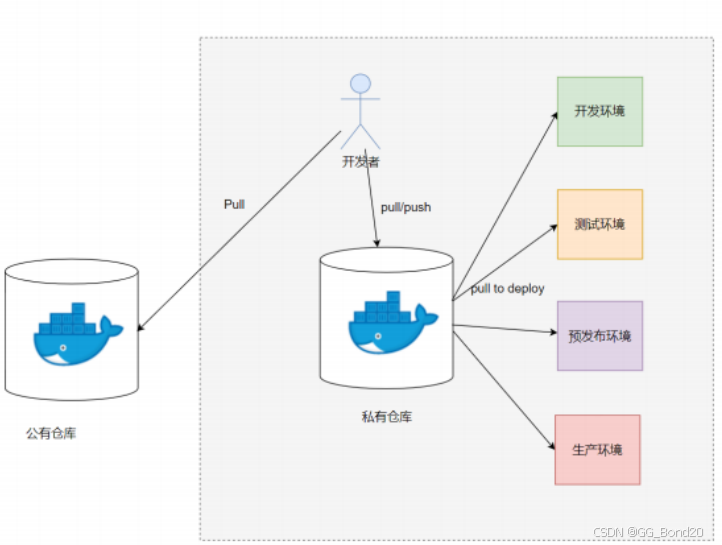 Docker Registry中的镜像通常由开发人员制作,而后推送至"公共"或"私有"Registry上保存,供其他人员使用,如:"部署"到生产环境