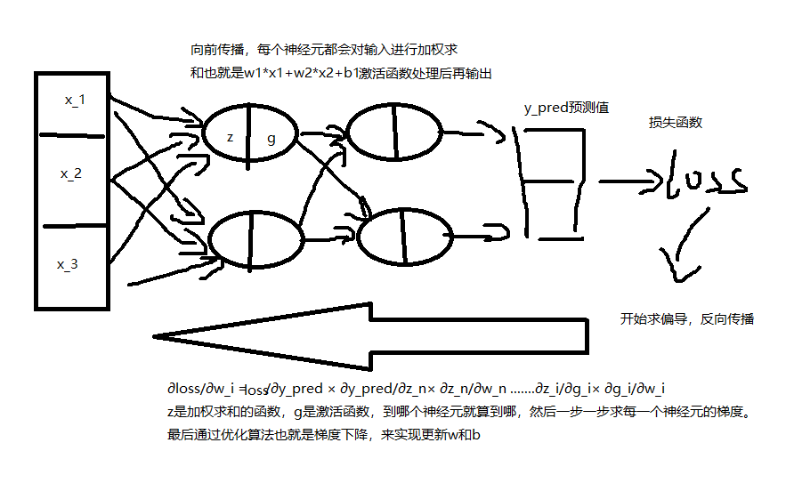 梯度下降的目的,是为了改变神经网络每个神经元中权重(w_i)和偏置(b_i)的大小,从而达到让每次网络模型输出的预测值和真实值更加接近,梯度(gradient)则是损失函数对w_i或者b_i求偏导得到的。