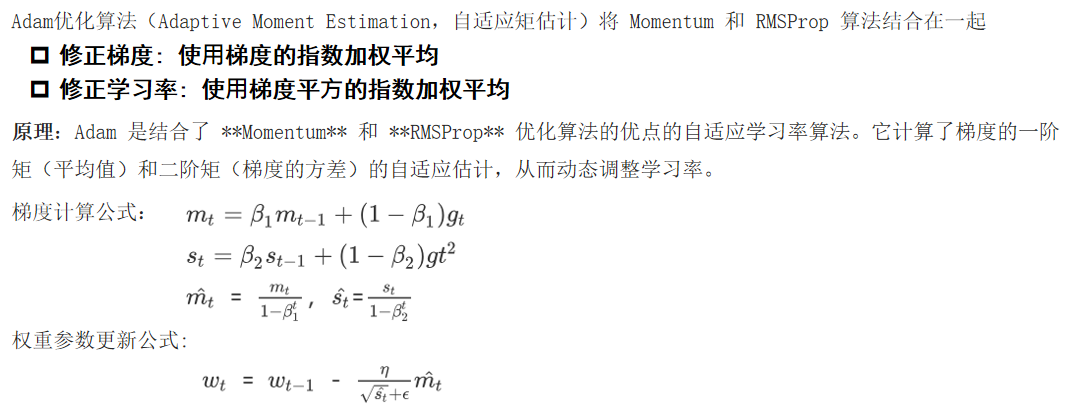 | RMSprop | 改进的自适应 | 解决学习率消失 | - | RNN等 |