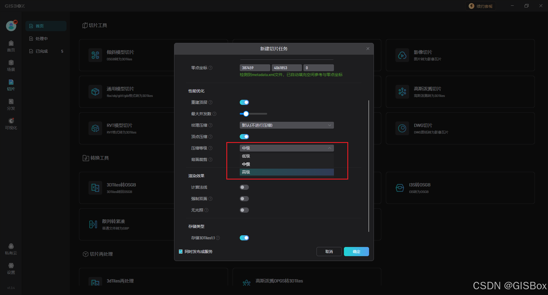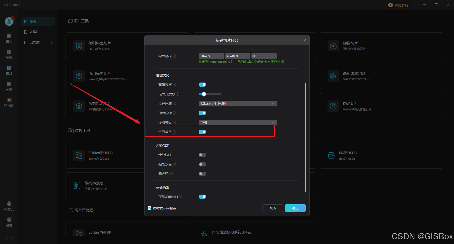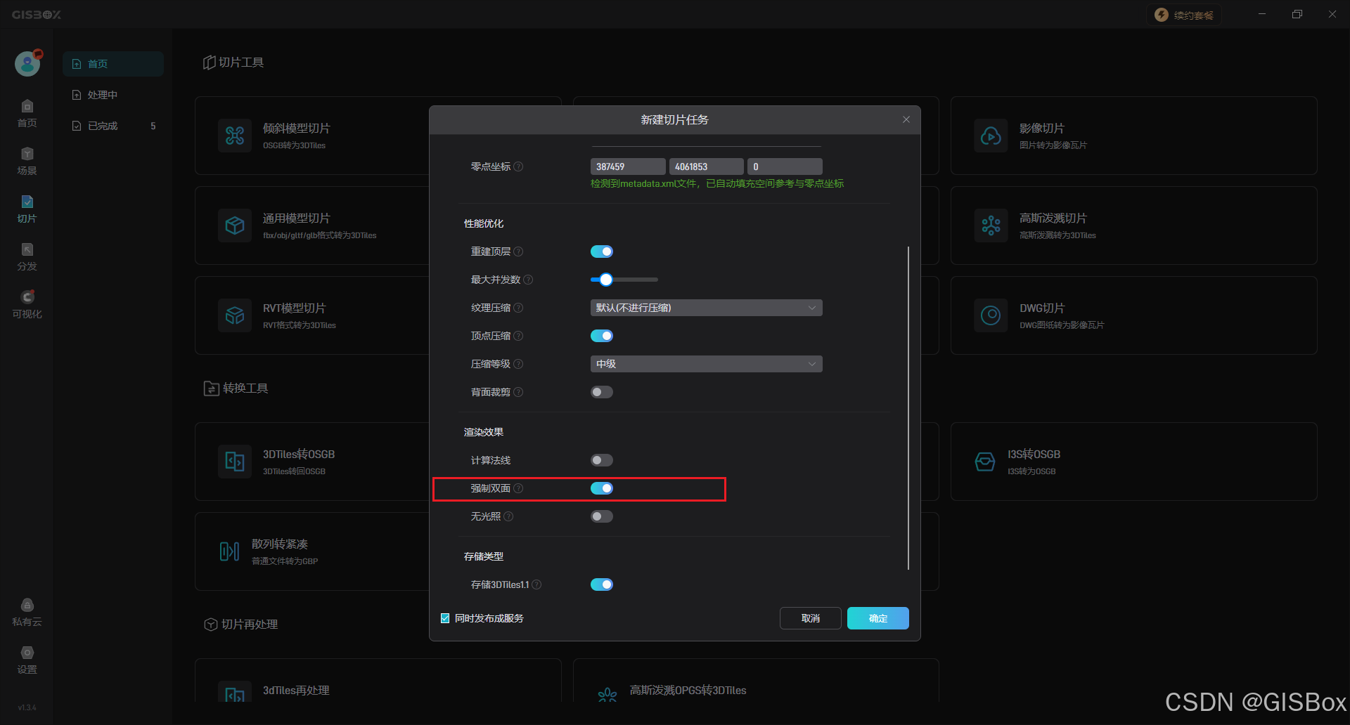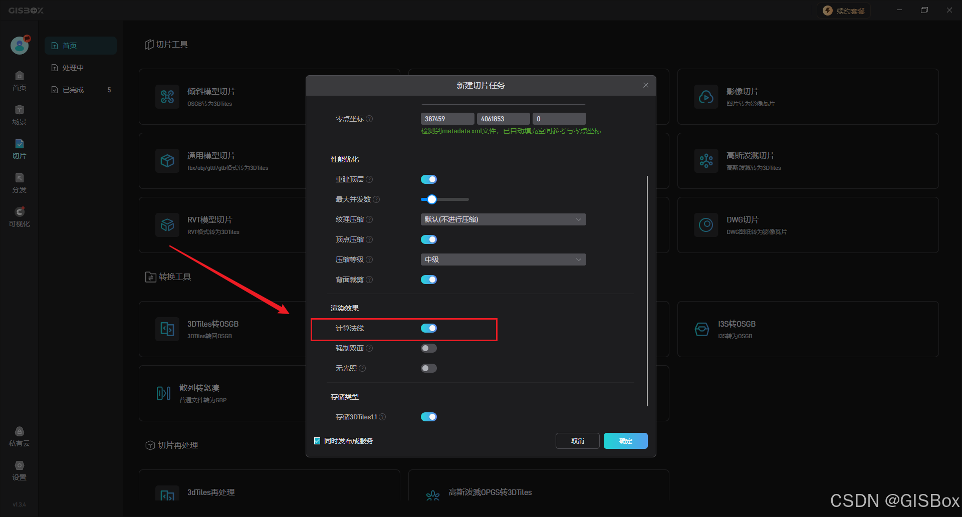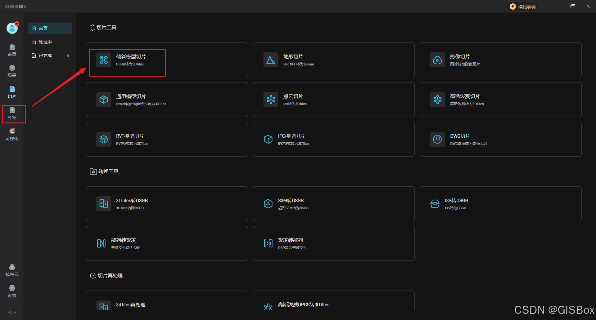 1、打开GISBox软件,点击“切片”,在切片工具中选择“倾斜模型切片”。