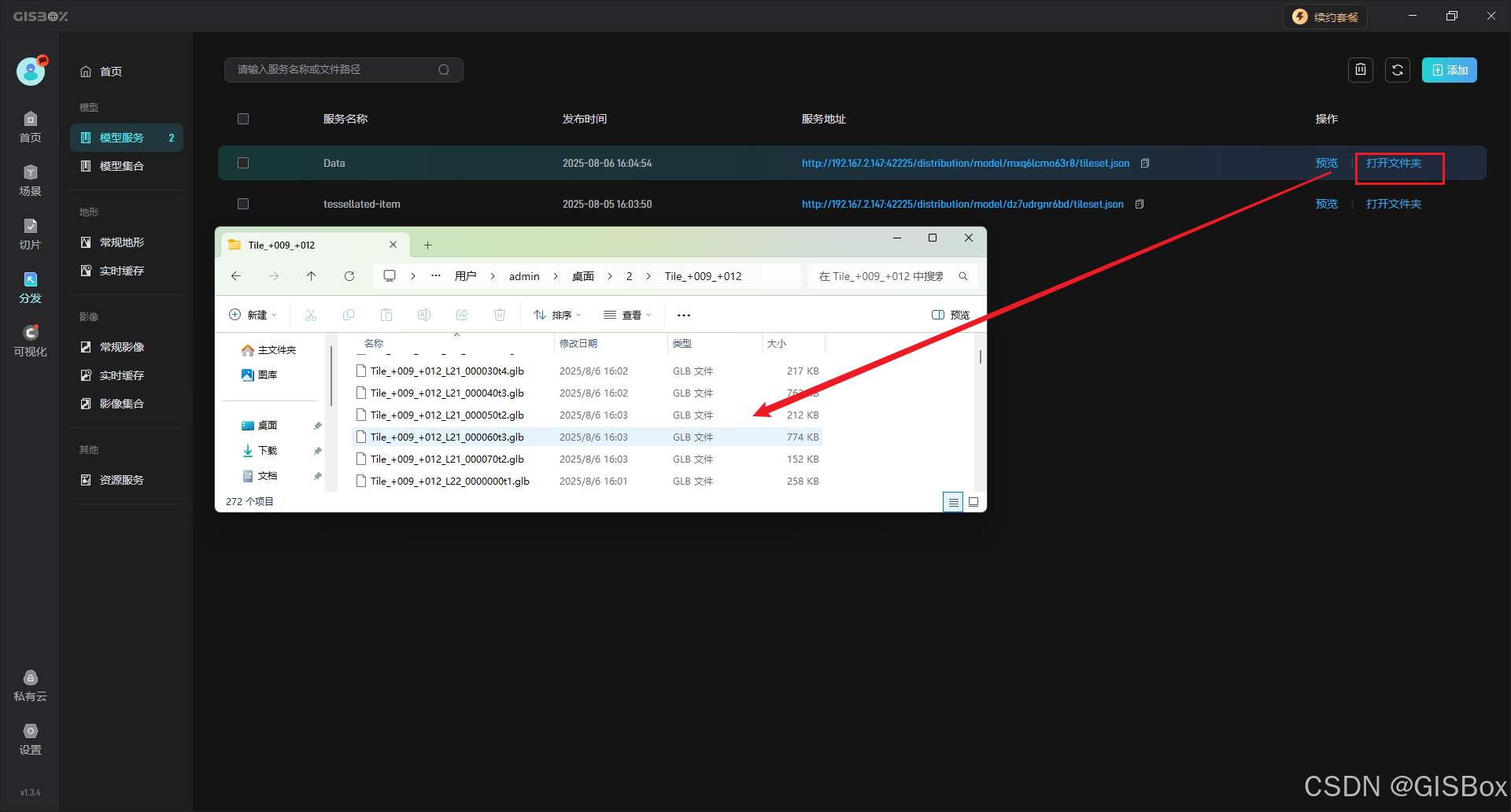 8、切片任务完成后,回到切片栏,点击“文件夹”按钮,就可以查看转换后的3DTiles文件。