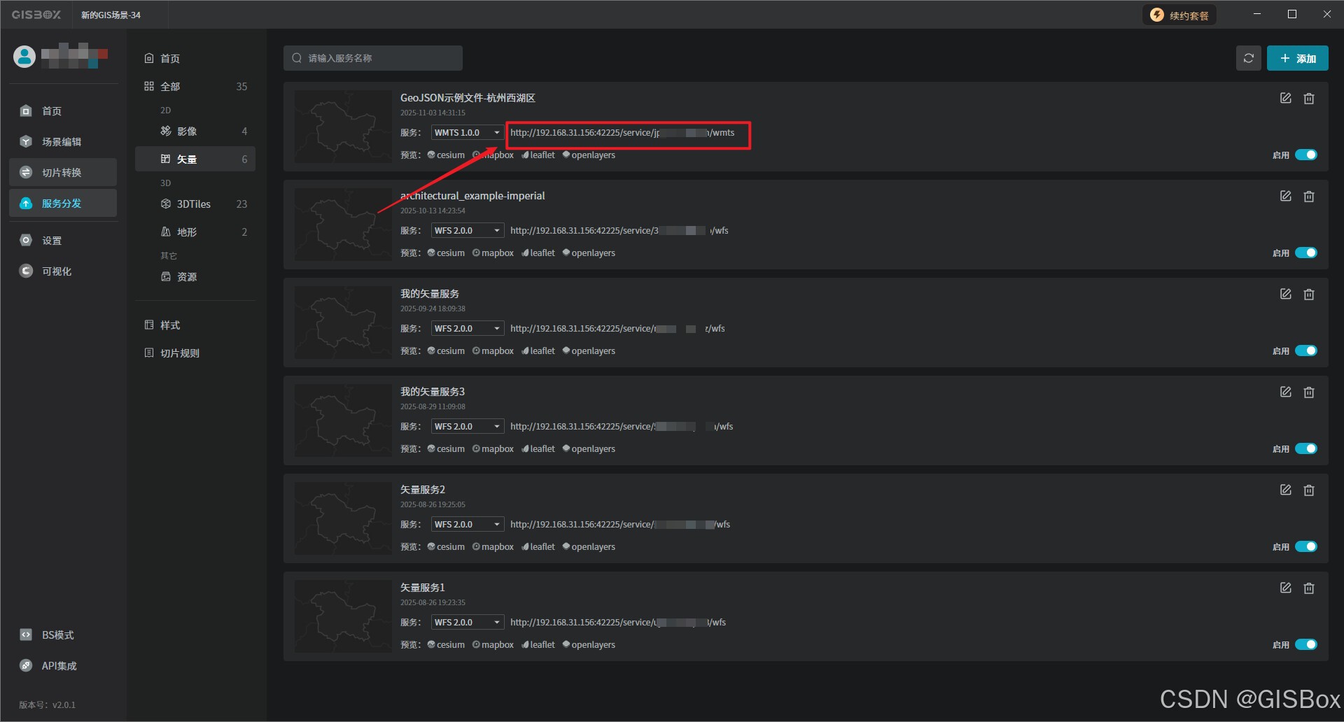 三、使用GISBox一键发布WMTS协议