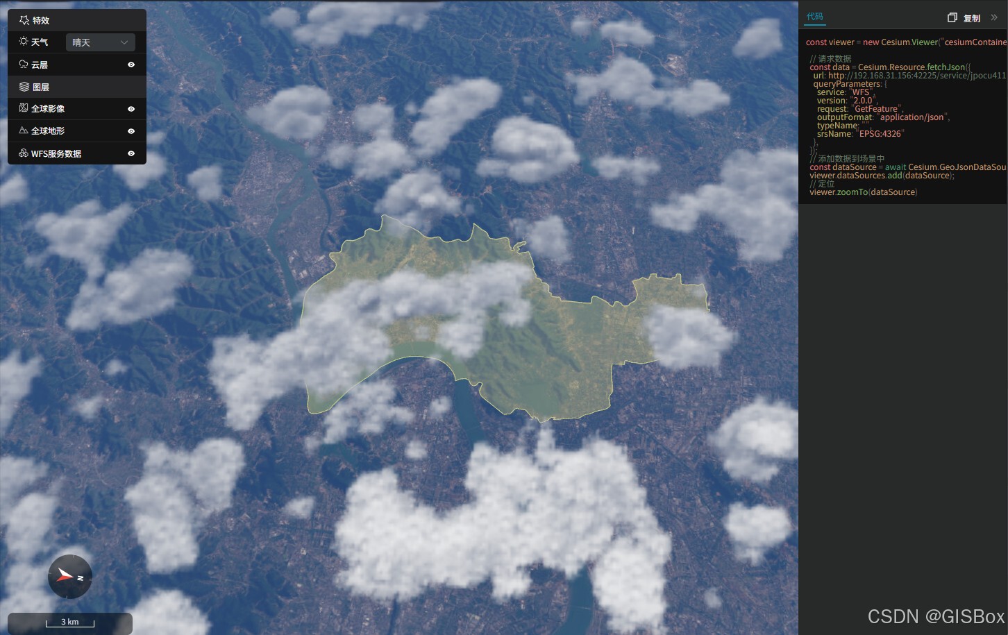 6、生成的服务地址能直接应用到cesium等平台或者是数字孪生项目中,如:山海鲸可视化。