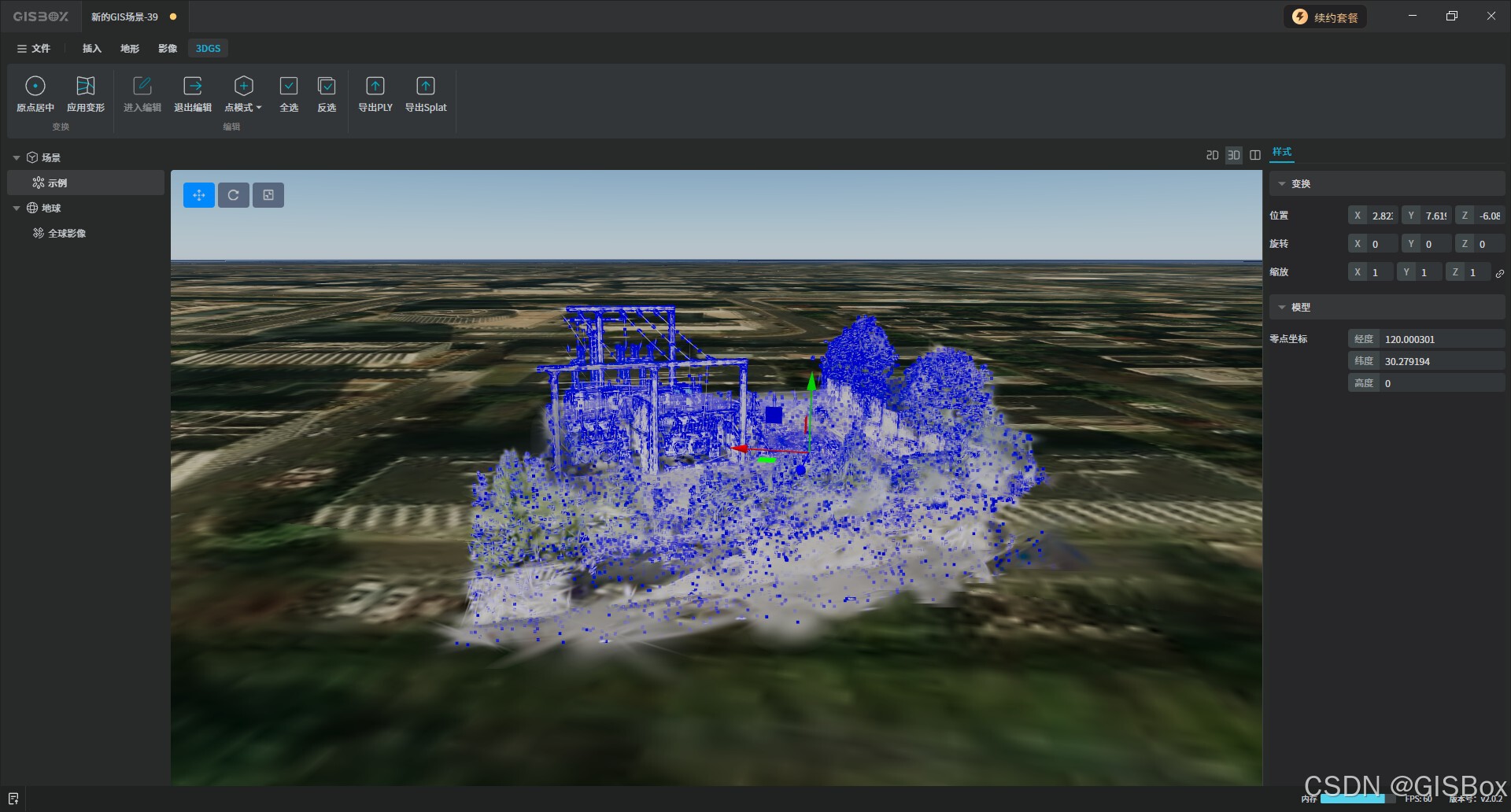 场景支持导入高斯泼溅文件:支持在场景中对高斯泼溅模型进行编辑,简化三维数据接入流程,降低数据准备成本。
