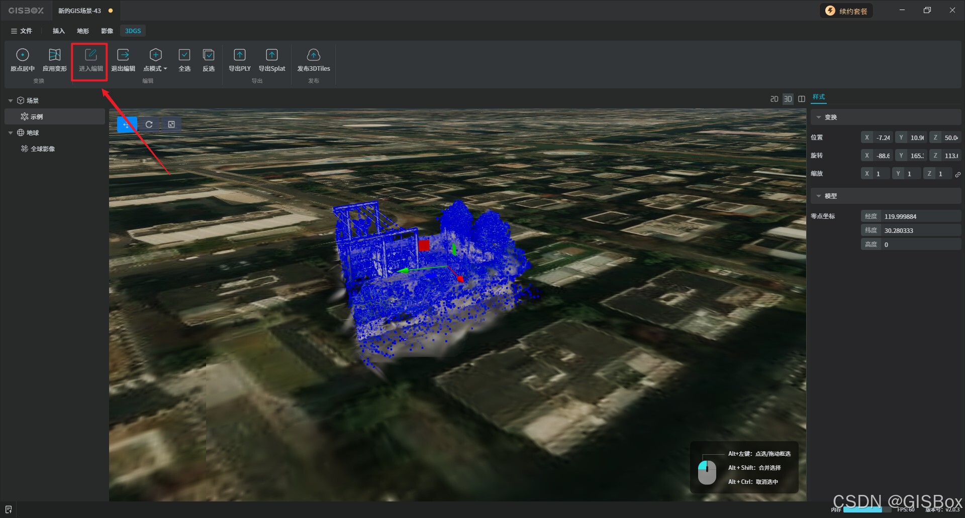 高斯泼溅作为一种新兴的3D场景表示与渲染技术,在渲染效率、重建质量、灵活性等方面实现了突破性平衡。为了响应GIS用户对高斯泼溅的编辑,GISBox团队加班加点对高斯泼溅切片进行升级并支持KHR_gaussian_splatting_compression_spz_2扩展,让高斯模型可轻松在场景中进行编辑以及发布。本文就带大家了解如何用GISBox对高斯模型进行编辑操作的。