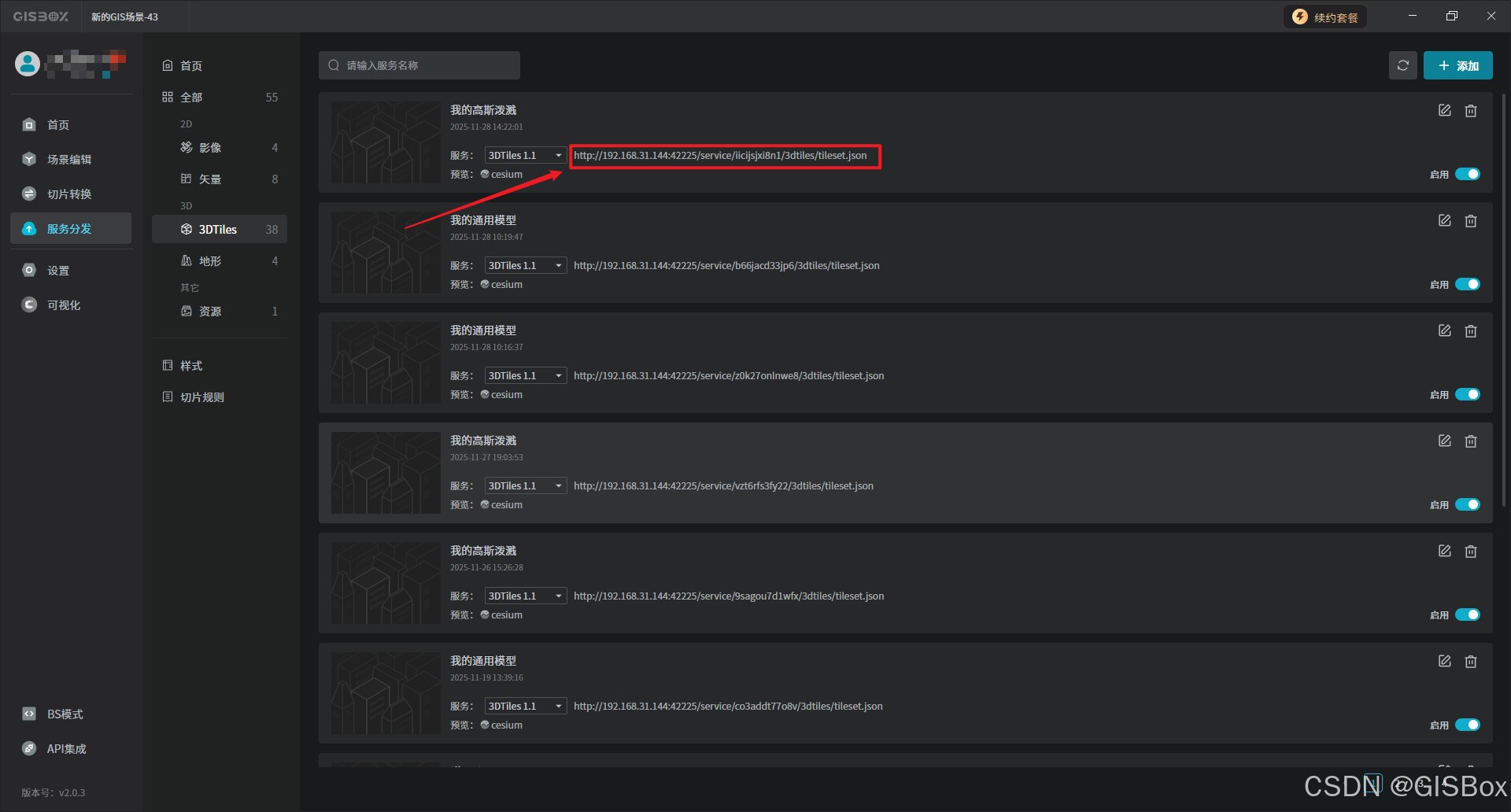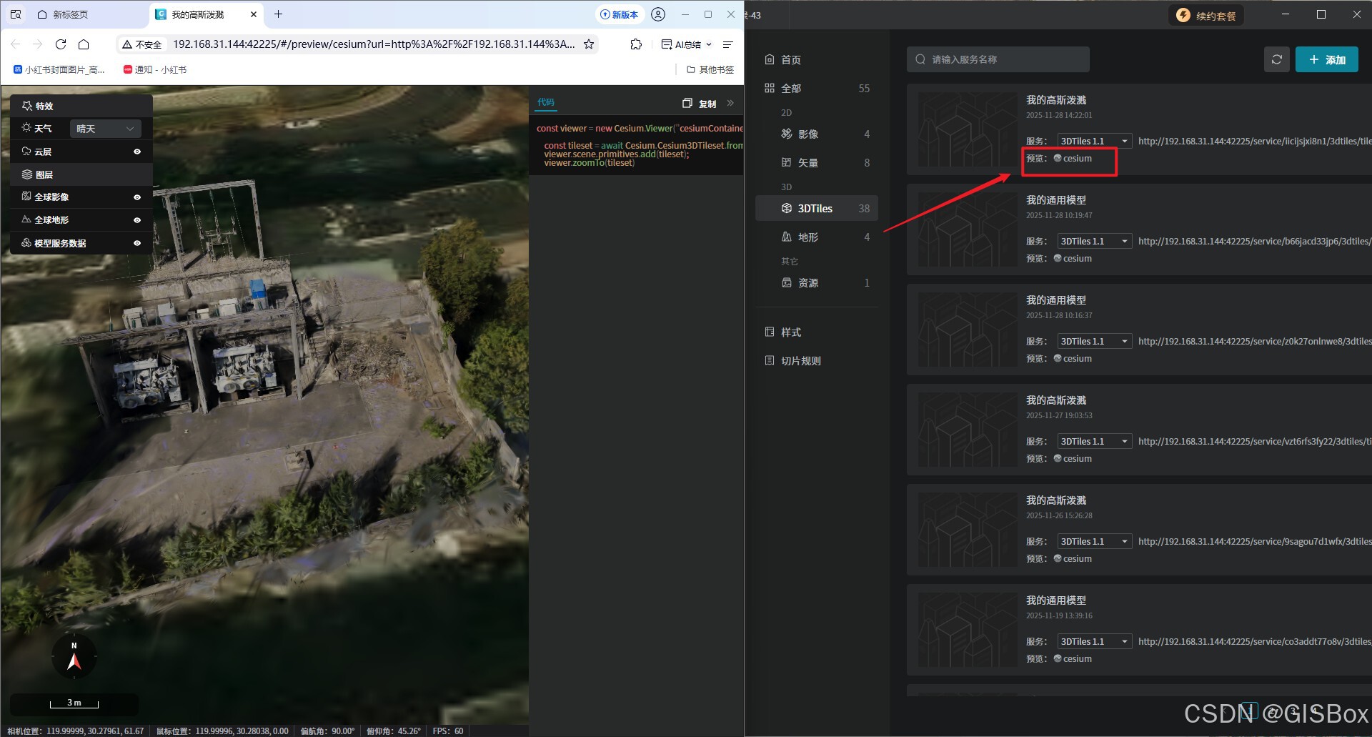 8、生成的服务地址可直接运用到cesium引擎数字孪生项目中,如山海鲸可视化。