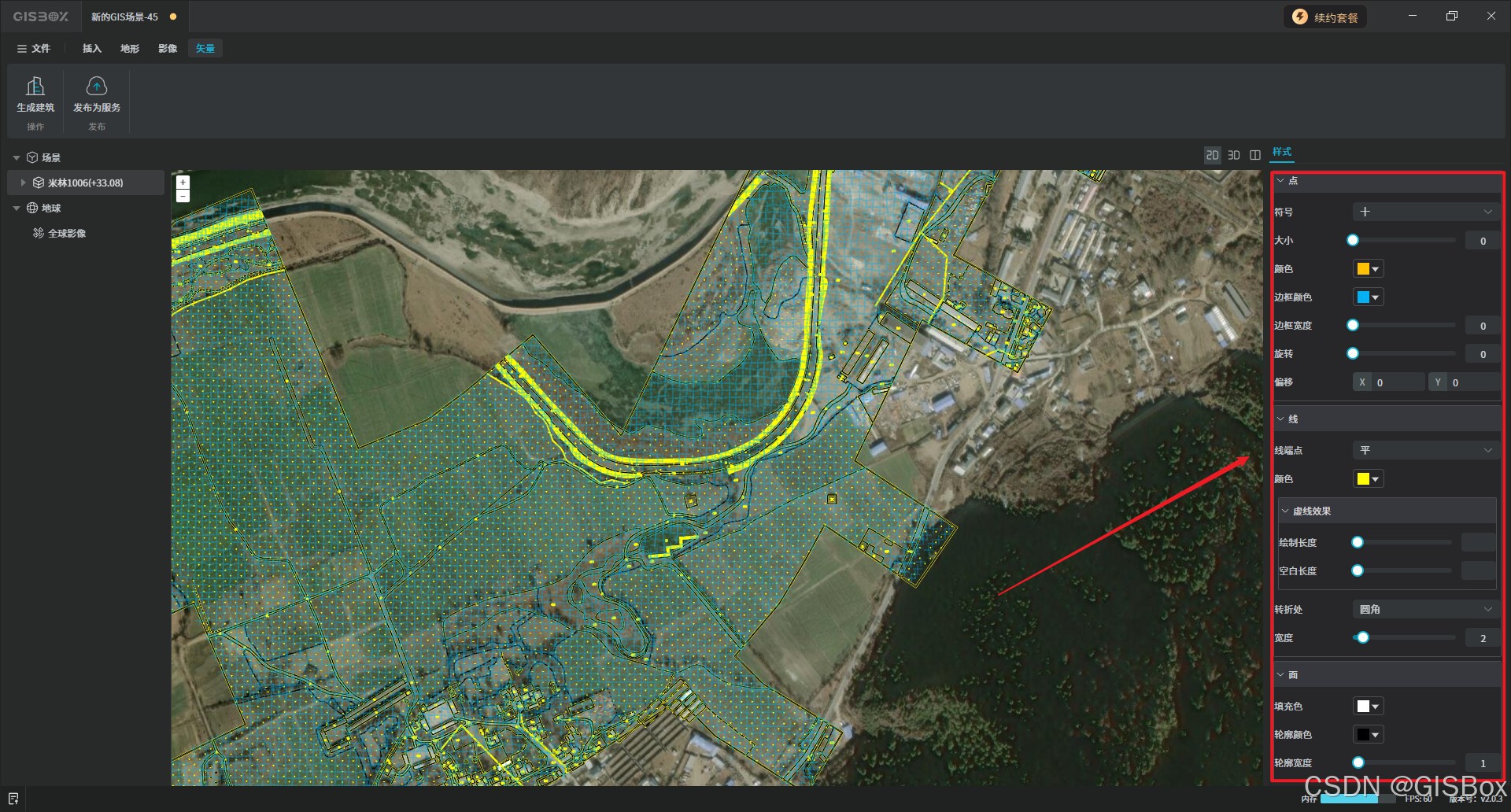 4、在右侧的样式中,可通过点、线、面对场景中DWG图纸进行样式修改。