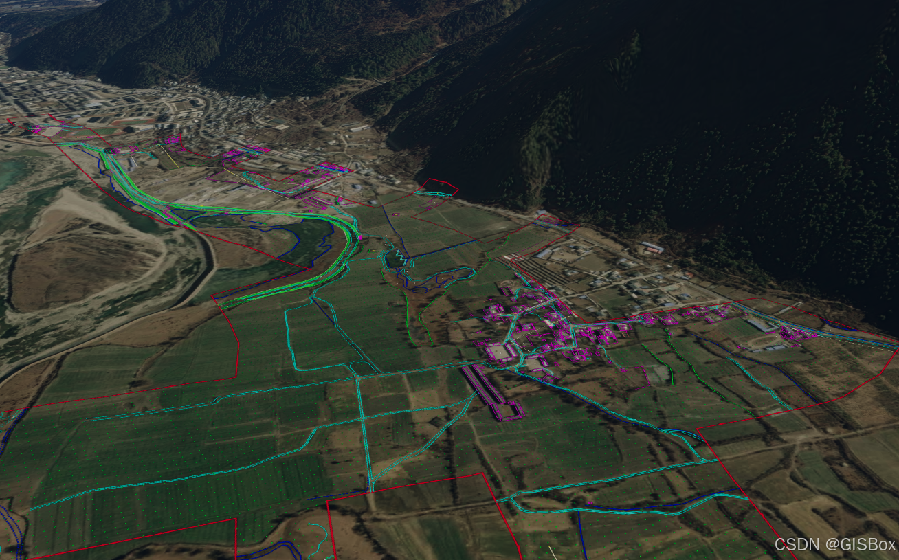 我们有的时候,希望能够将DWG文件位置对齐到地理系统当中,并展现在3D GIS系统里,效果如下图所示: