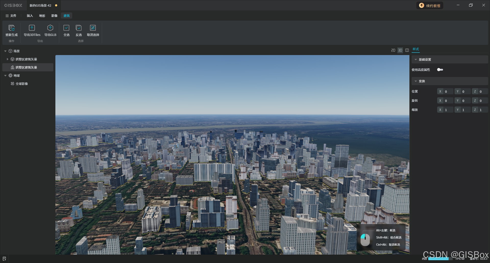面对这一问题,在GISBox团队地努力下,在GISBox的场景编辑中实现了框选地图,秒变建筑模型的功能,将矢量数据转为3D建筑模型,逼真的建筑模型在GIS领域提供很大的帮助。本文带大家了一起展示一下建筑自动生成这一功能!
