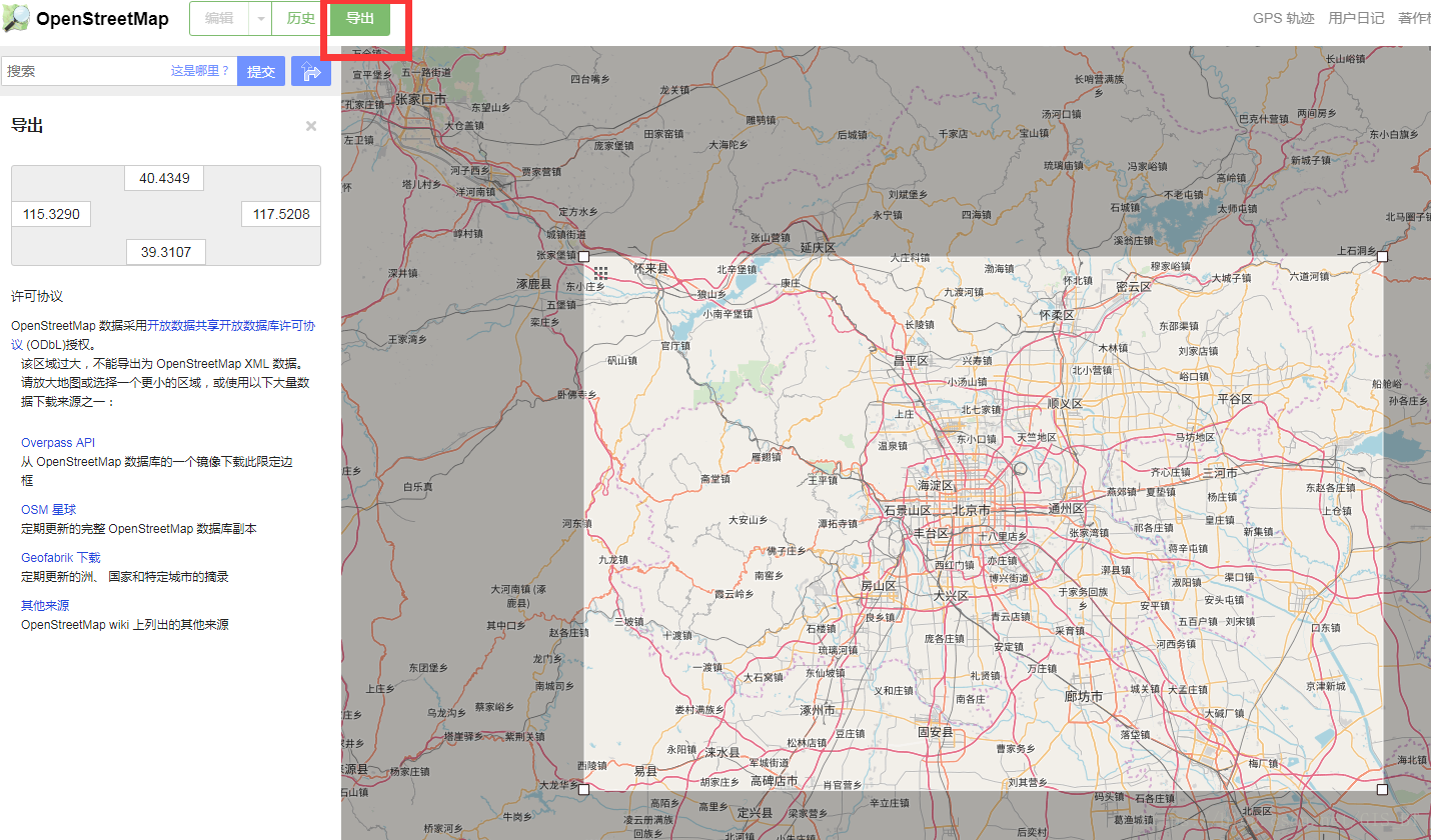 STEP1:打开OSM官网,将底图定位在需要下载的区域