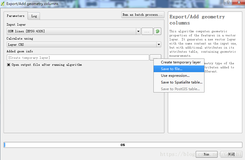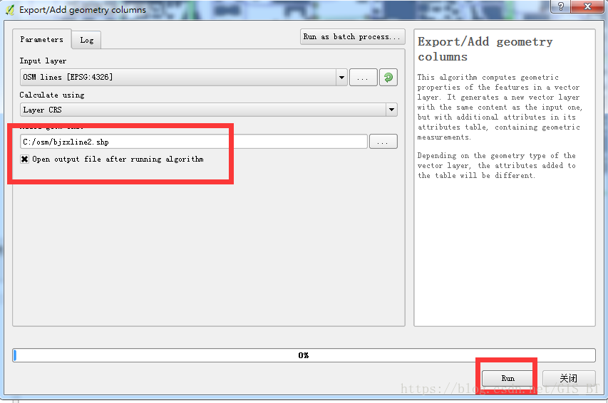 STEP5: 数据转换,生成shp文件,在QGIS菜单栏中,选择“矢量”——>“几何工具”——>“导出/添加几何字段”