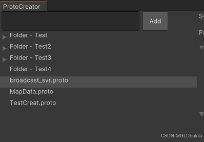 左侧列表读取的是ProtoCreator/ProtoFiles 目录下的.proto文件以及文件夹生成的树节点列表