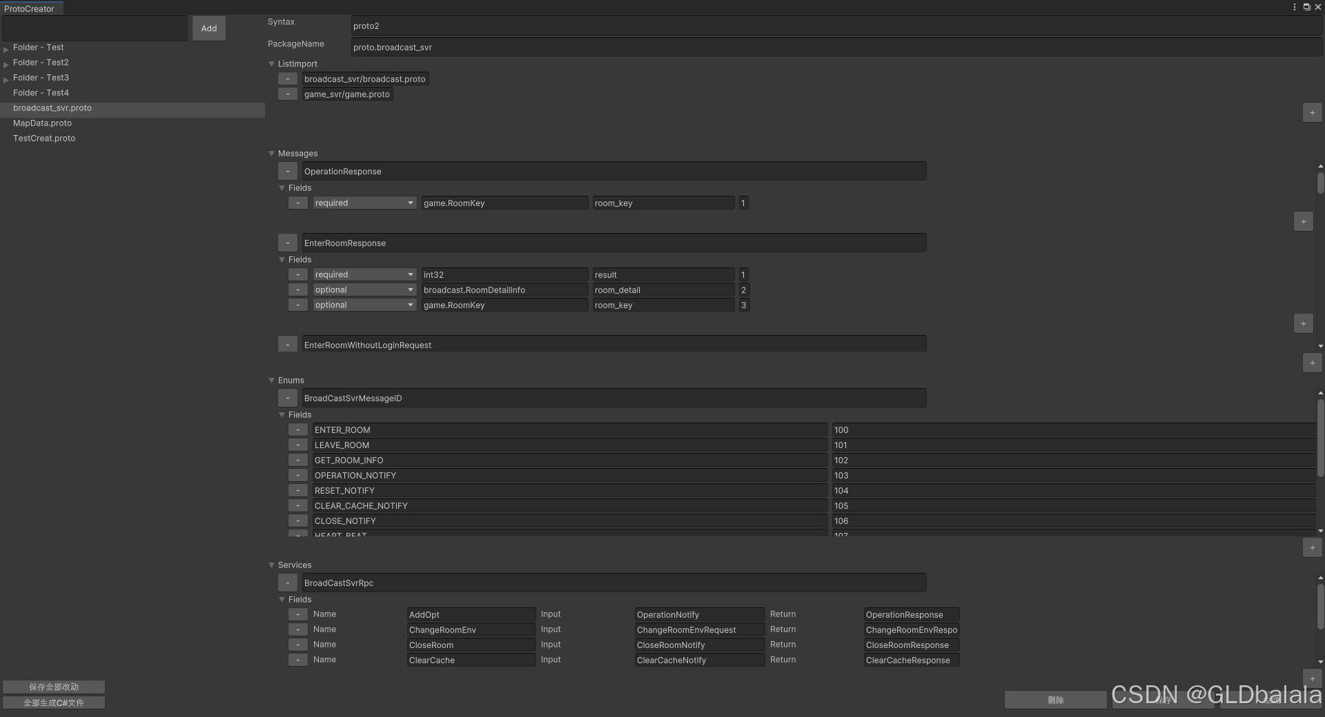 项目用需要编写proto协议,每次手动编写.proto文件再通过cmd脚本生成.cs文件过于繁琐,所以希望有个界面能方便编辑。