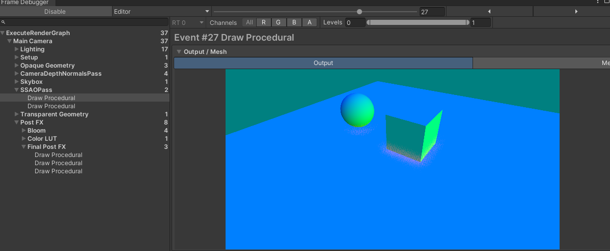 buffer.DrawProcedural(Matrix4x4.identity, SSAOParams.SSAOMaterial, (int)SSAOPassEnum.Final, MeshTopology.Triangles, 3);