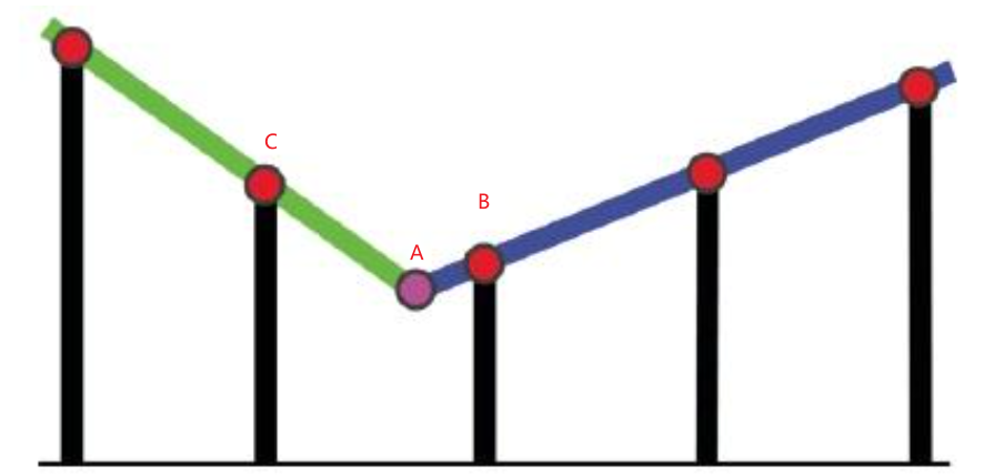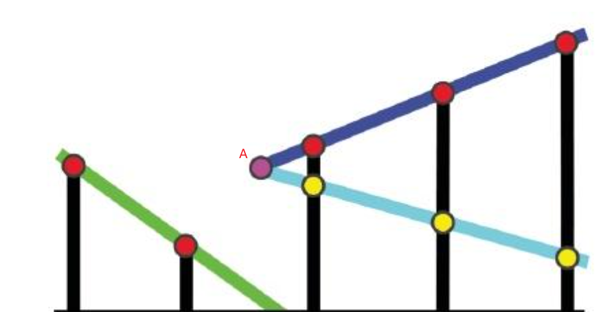 可以看到,在这个情况中两个边缘并没有交点,褶皱边的计算方式无法生效,这个时候,通过记录浅蓝色边的深度,计算得到交点A,在用A点的位置作为参考决定如何去做混合颜色的比例