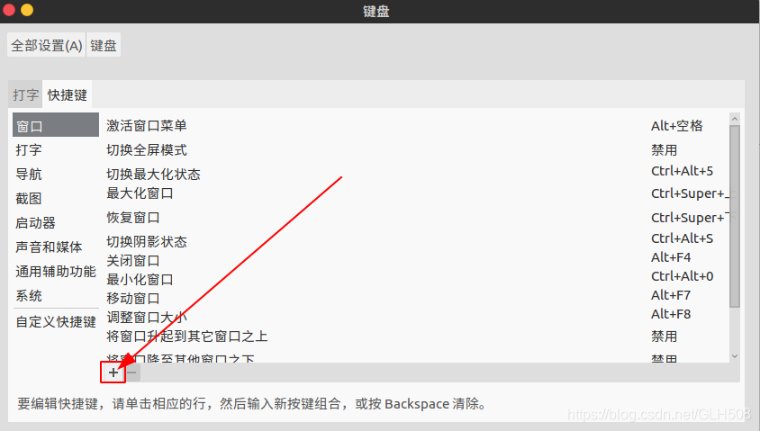 7.在系统设置----键盘---快捷键---下面的加号