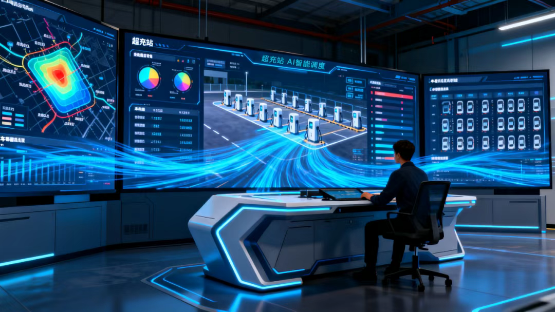 超充连接前端场景中,城市级AI统筹全局,根据电网负荷、实时电价和车主需求,计算出最优排队方案。通过AI控制接触器,有序地分配着数百千瓦的充电功率,实现用户与电网合理匹配。