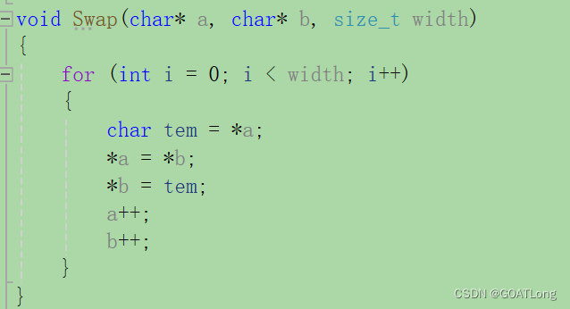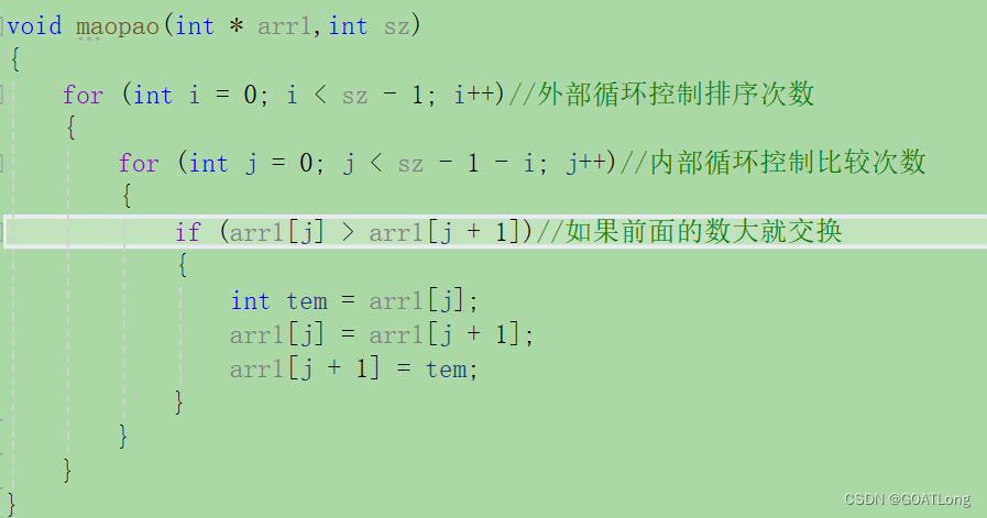 这个循环控制的就是字节交换的次数这样就很好的解决了整个元素的交换问题