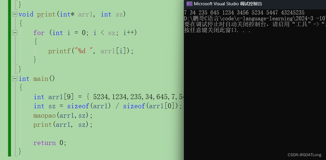 这就是冒泡排序的实现。接下里我么通过这种思想来模拟qsort函数