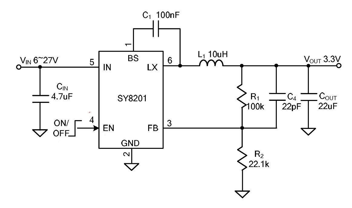 围绕SY8201ABC的电路就是为了调节这颗降压型DC-DC电源芯片的输出电压。