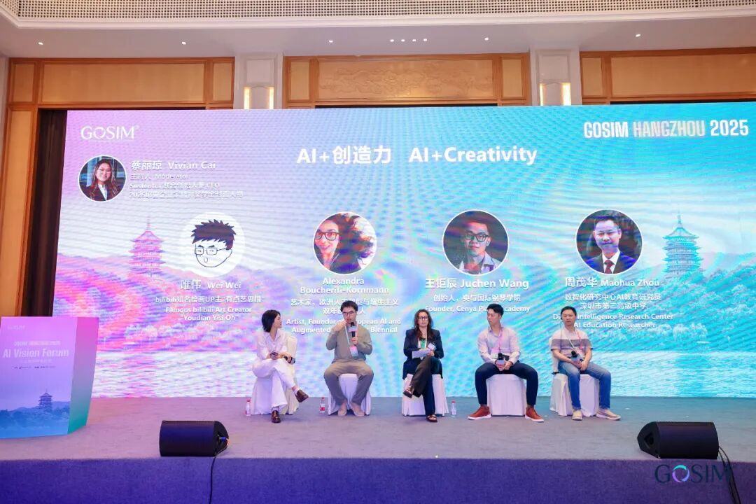 AI 拥有无限潜力,但能否真正发挥价值,很大程度上取决于人类的创造力——这正是「AI+创造力」主题圆桌对话希望探索的问题。在 Sustentra 联合创始人兼 CEO、2025 耶鲁企业家精神奖学金封面人物 Vivian Cai 主持下,现场汇聚了来自各领域的嘉宾:bilibili 知名绘画 UP 主“有点艺思哦”唯伟,艺术家、欧洲人工智能与增生主义双年展创始人 Alexandra Boucherifi-Kornmann,央与国际钢琴学院创始人王钜辰,深圳市第二高级中学数智化研究中心 AI 教育研究员周茂华,他们围绕 AI 如何激发艺术与教育领域的创造力、拓展创作边界,以及技术与人文的融合路径展开深入讨论,探寻未来创新的新可能。