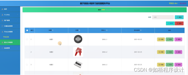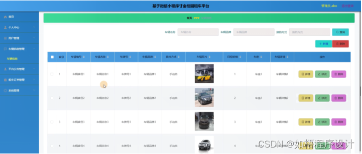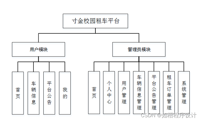 这些功能可以充分满足基于微信小程序寸金校园租车平台的需求。此系统功能较为全面如下图系统功能结构如图4-5所示。