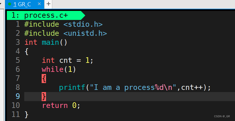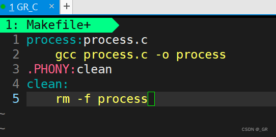 这里先演示运行态R,运行态应该很好演示,进程跑起来应该就是了吧?这里创建一个linux_8目录用于演示,然后写Make file:process.c生成process: