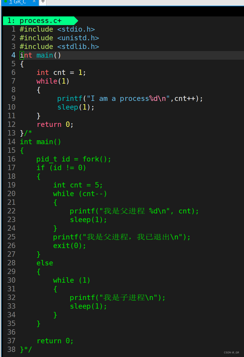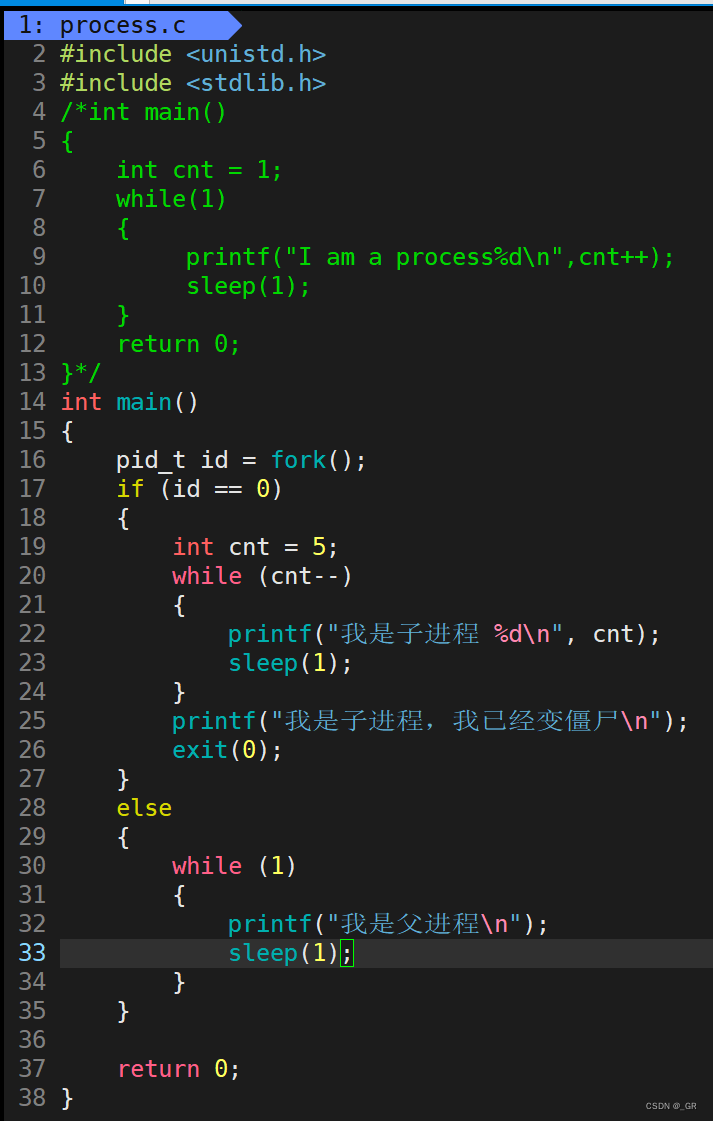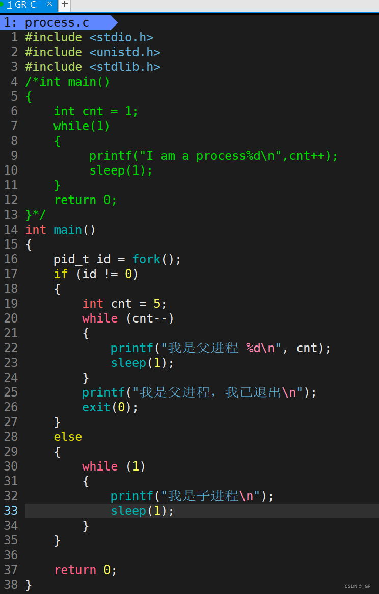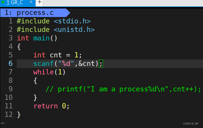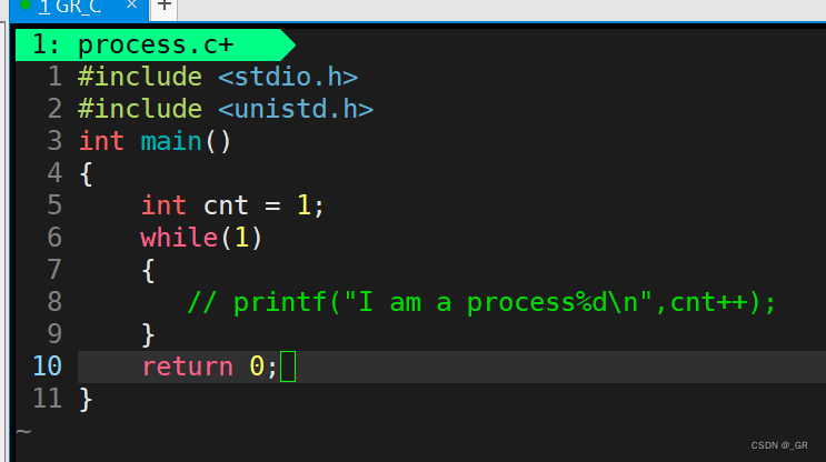 好,现在我们再修改一下 process.c,我们就把printf注释掉,单纯的死循环: