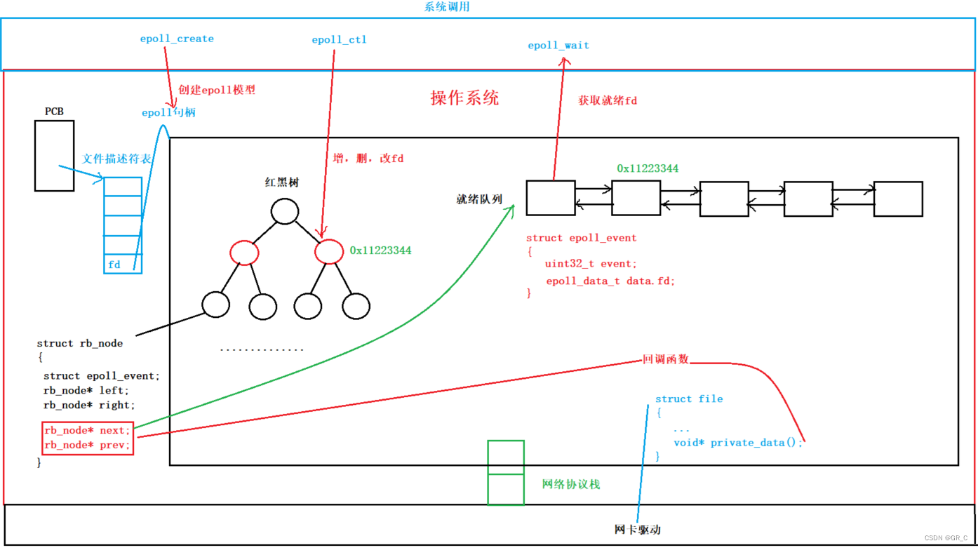 事件回调机制:避免使用遍历检测,而是使用回调函数的方式,将就绪的文件描述符结构加入到就绪队列中。epoll_wait返回直接访问就绪队列就知道哪些文件描述符就绪,这个操作时间复杂度是O(1),即使文件描述符数目很多, 效率也不会受到影响。