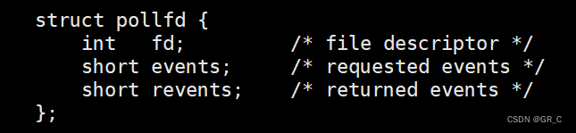 此时的文件描述符fd直接设置到struct pollfd结构中即可,需要设置哪个就设置哪个,不用再去寻找对应的位图。