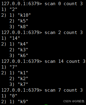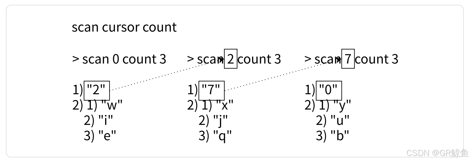 注意:此处的 count(给 Redis 服务器一个 “提示” / “建议”,写入的 count 和实际返回的 key 的个数不一定完全相同,但是不会差很多)和 MySQL 的 limit(精确的)不一样。