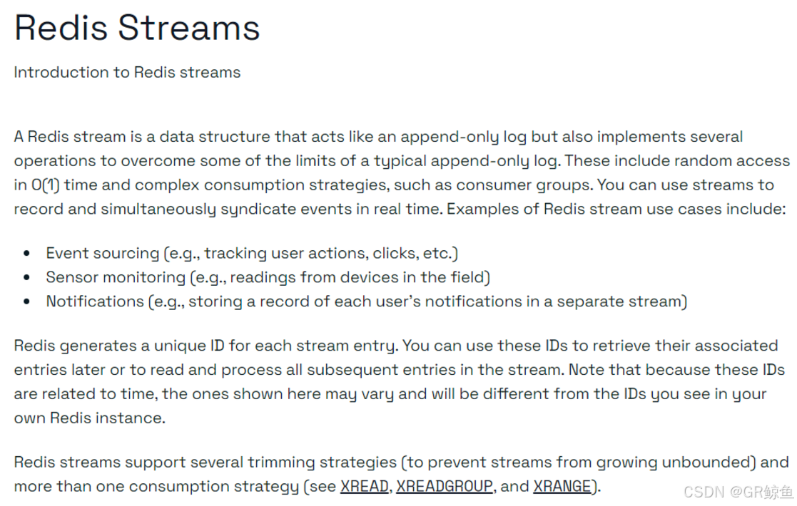 - 可扩展性和效率:Redis Streams 旨在高效处理大量消息,无论是在内存使用还是性能方面。