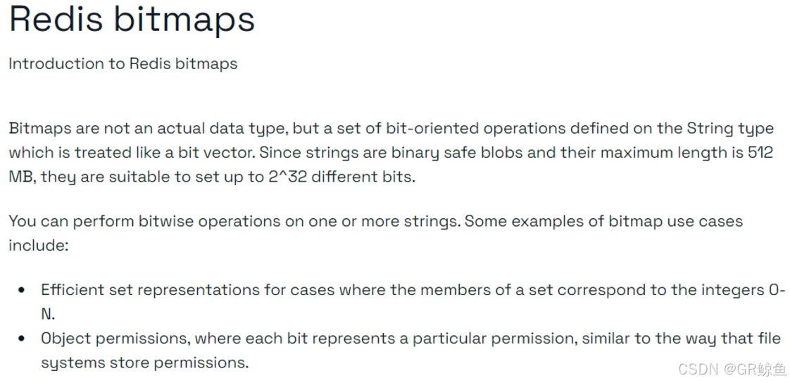 - 位级操作:Redis 提供命令来设置、清除和测试字符串中特定位置的位、计算设置位、查找设置或未设置位等。
