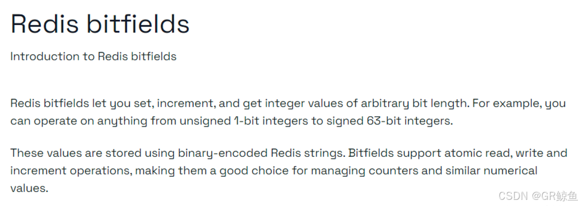 - 原子操作:与其他 Redis 操作一样,BITFIELD命令是原子的,这使得它们可以在并发场景中安全使用,而不需要额外的锁定机制。