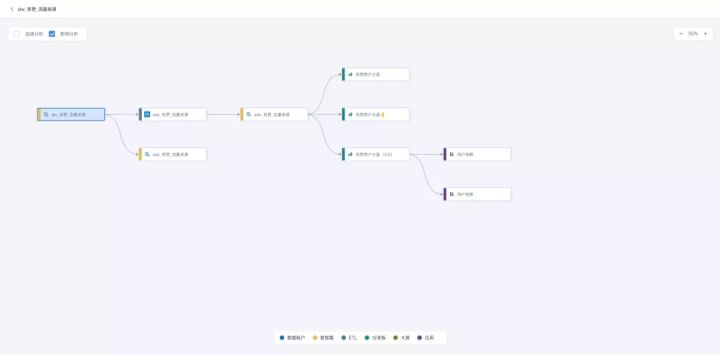 面对企业客户复杂的业务分析场景及所产生的海量数据,观远数据通过「资源血缘」实现了更好的数据管理,通过查看各资源的「查看资源血缘」入口,即可查看当前资源的全局资源血缘情况,能够了解该资源的依赖与影响,帮助追溯节点的业务信息,评估删改资源风险,在排查问题时,也可快速定位问题所在。