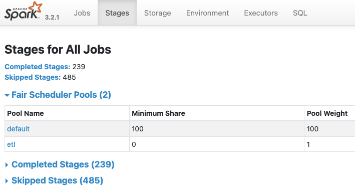 也就是这里的差值会造成 StageMetric 中存储了许多 skipped 的 stage,从 ui 上看 skipped stages 大约是 completed stage 的两倍多。
