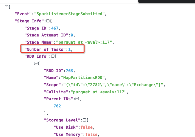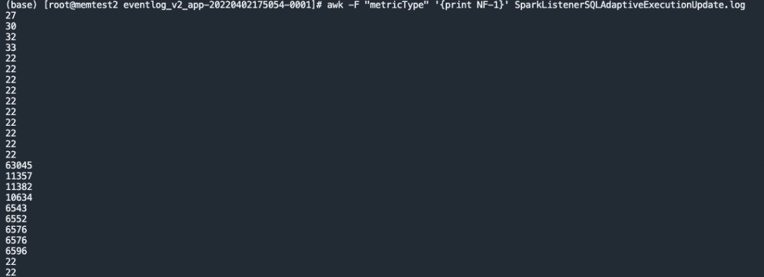 根据代码,能够使得 metrics 增加的事件只有两个,SparkListenerSQLAdaptiveExecutionUpdate 和 SparkListenerSQLAdaptiveSQLMetricUpdates。在 eventLog 中能够看到 SparkListenerSQLAdaptiveExecutionUpdate 触发的次数确实不是很多,但是每一次添加的量却不少。